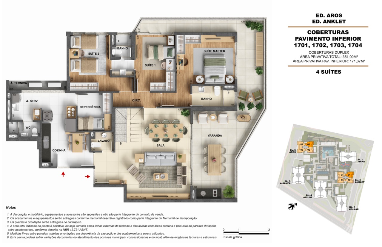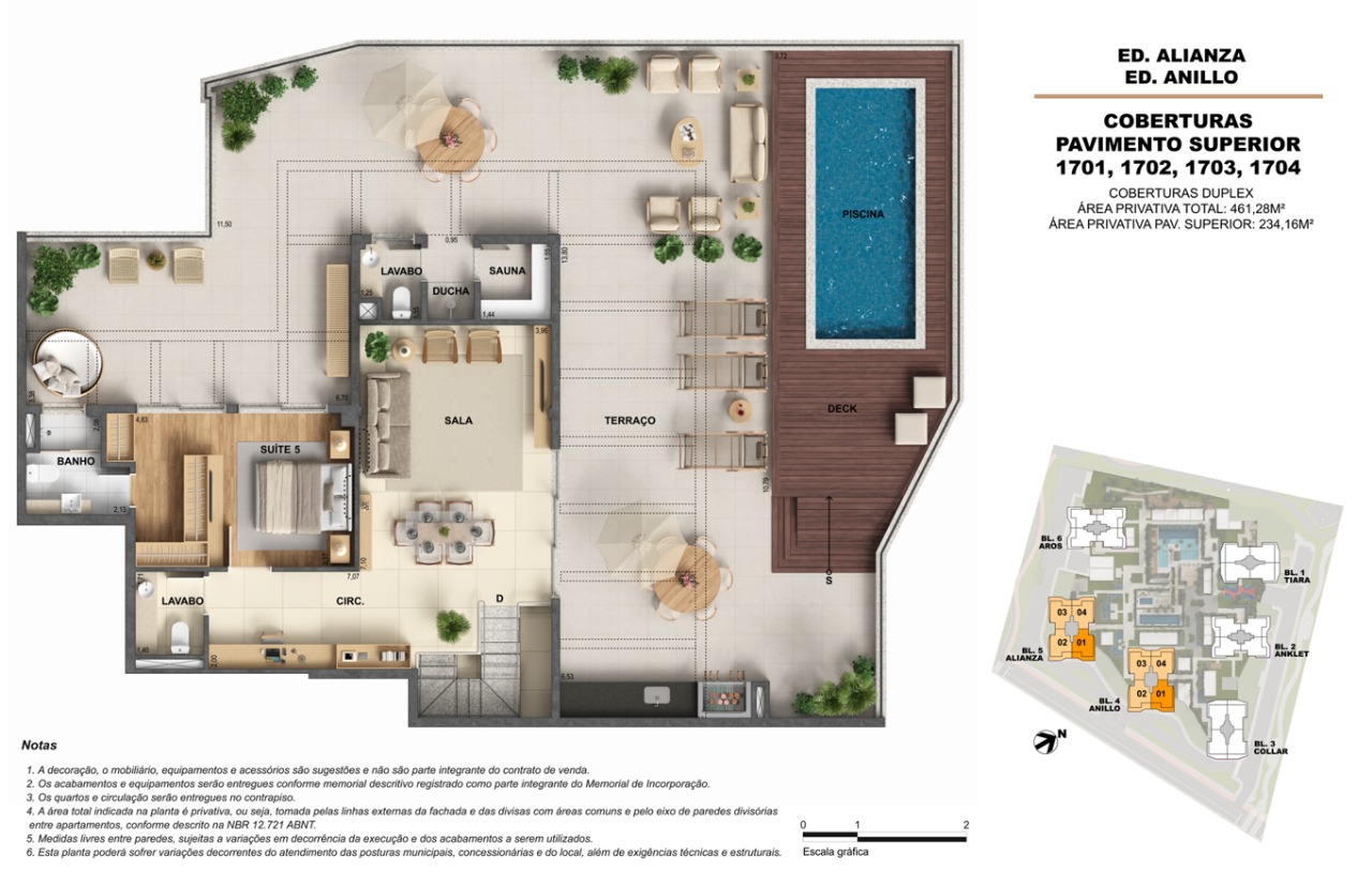 | Coberturas | 351m² a 461m² | Valores não especificados |